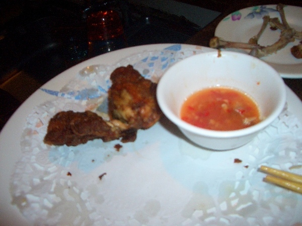 這個也是必點菜之一(是一定要吃的啦)~~它是泰迪小吃的特製炸雞(抱歉我忘了多少)~~放在盤子中的是炸雞的沾醬(酸酸辣辣的很好吃)~~也是好吃到不行啦~~